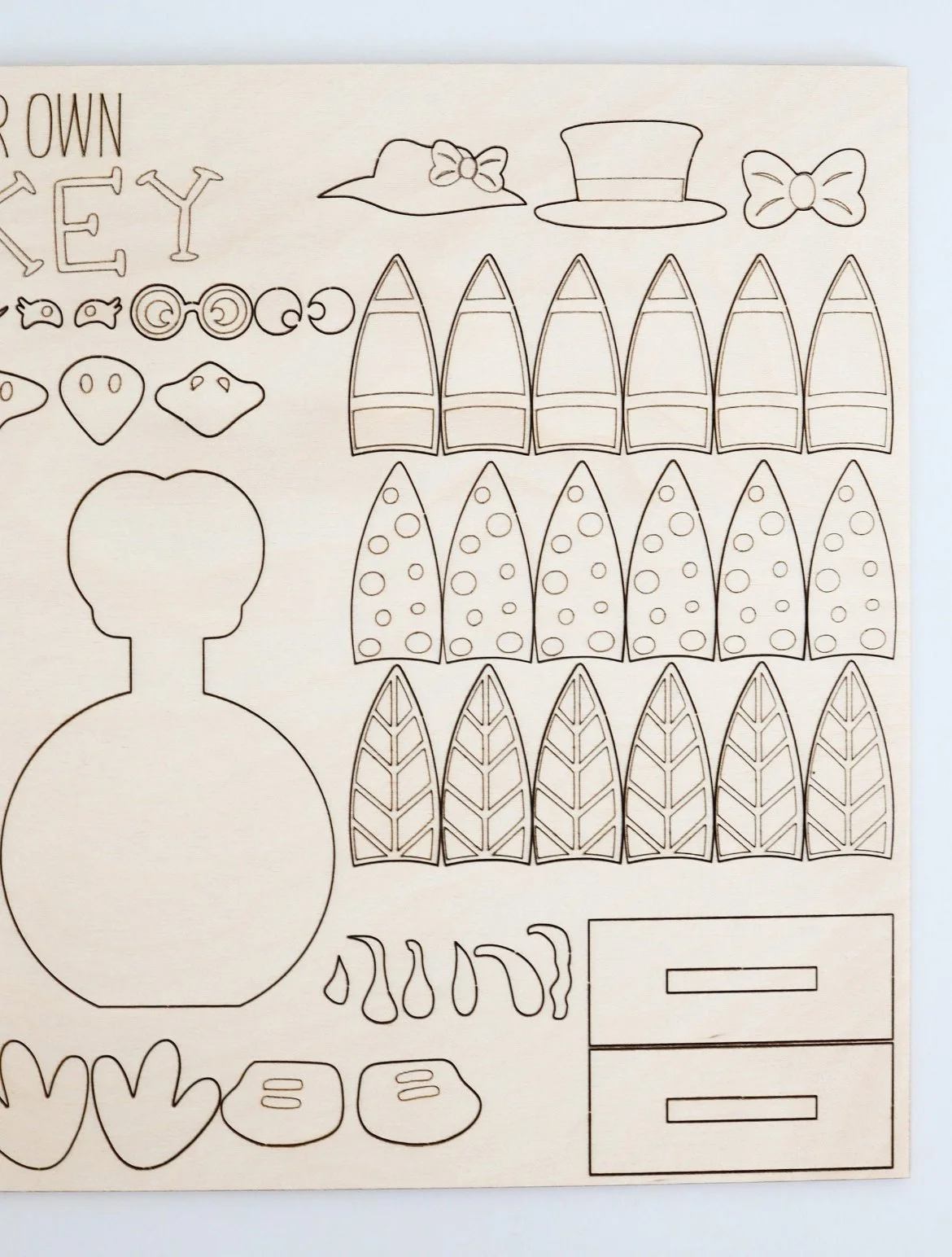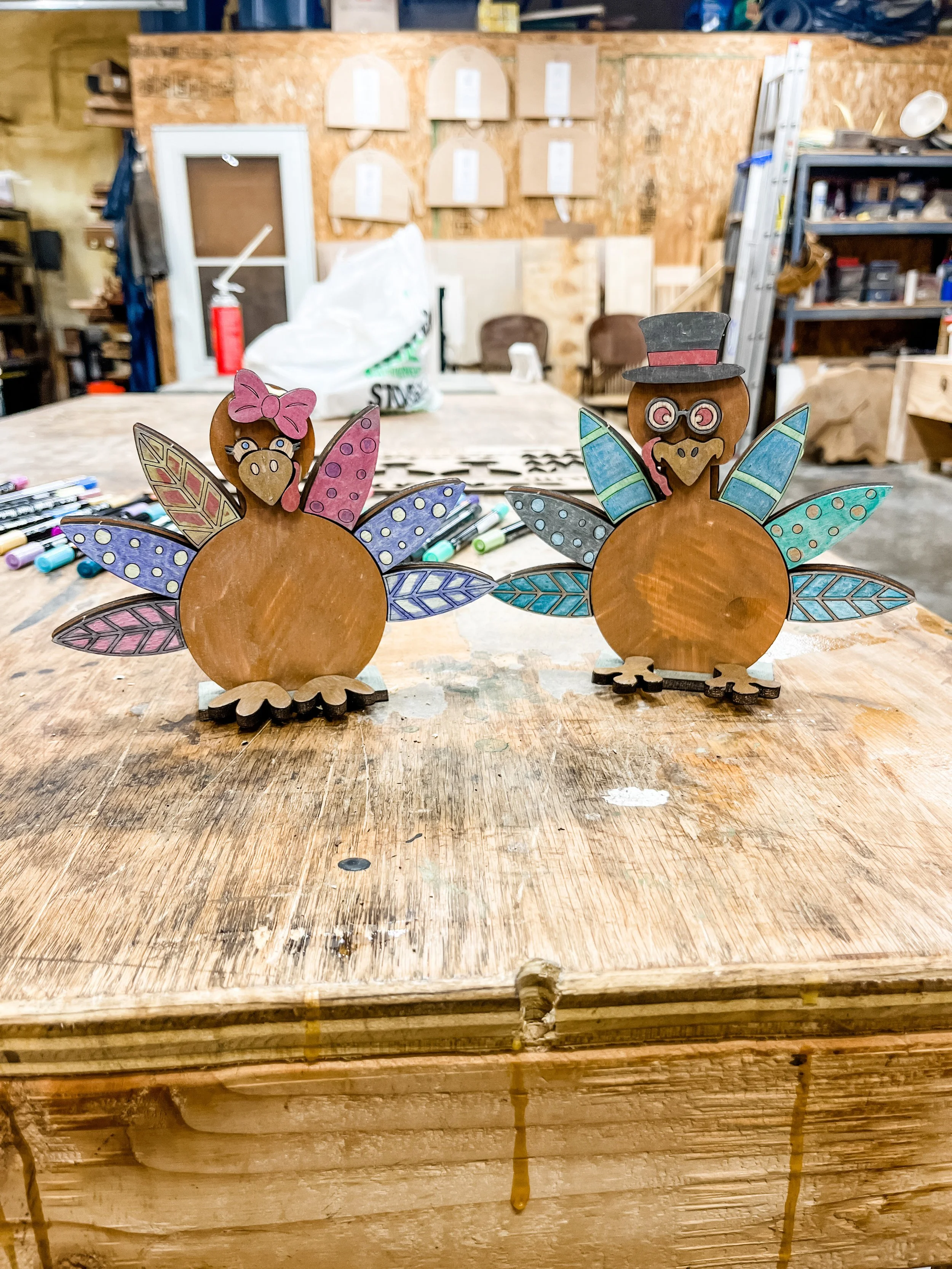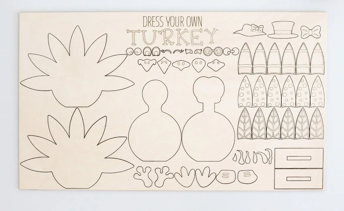 Perfect for kids and adults alike, these adorable wooden turkeys come in three kit options: a male turkey, a female turkey, or a full sheet with a male & female turkey. All you need is some regular Elmer’s glue or wood glue to attach the pieces once you’ve finished decorating.
